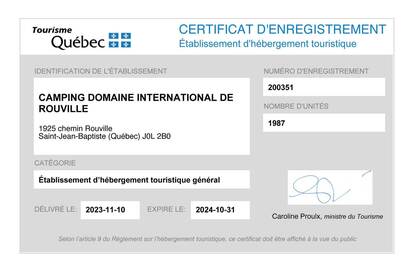 Certificat d'enregistrement